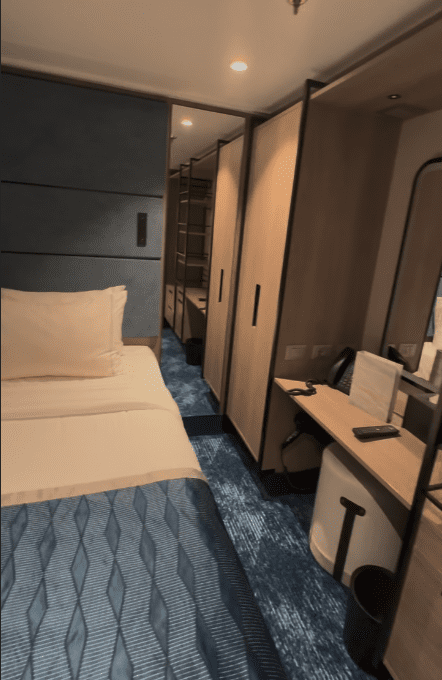 When I stepped into this interior stateroom on Norwegian Aqua, what stood out first was how clean and modern everything feels—soft, neutral tones, a sleek desk and TV area, and storage that’s actually usable instead of just decorative. The room is compact, but it’s smartly designed, with space to unpack, hang your clothes, and tuck your suitcase away so it feels like a cozy little retreat rather than just a place to sleep. If you like the idea of spending most of your time enjoying the ship and the ports while keeping your budget in check, this is the kind of interior cabin that still gives you a comfortable bed, a well‑thought‑out layout, and all the same ship amenities as everyone else onboard.