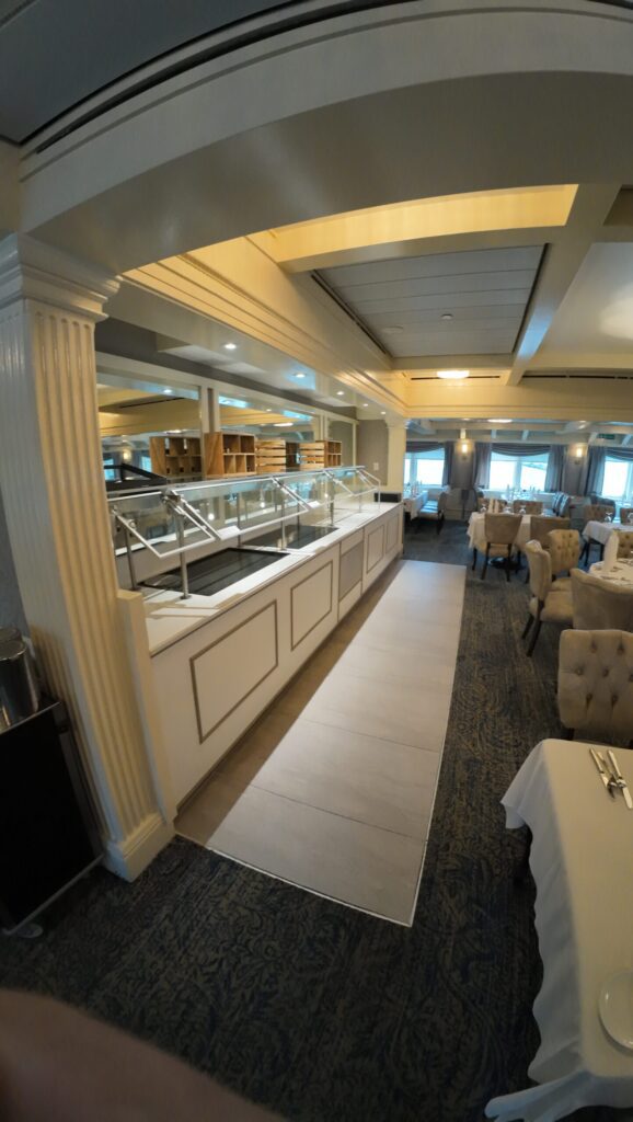 Up at The Grill, the mood shifts into a more casual kind of indulgence. Here, the focus is on relaxed, unhurried dining surrounded by floor‑to‑ceiling Great Lakes views. During my inspection, I loved how the buffets looked vibrant and fresh, with colorful salads, beautifully plated main courses, and decadent desserts all presented in a way that invited you to take your time.