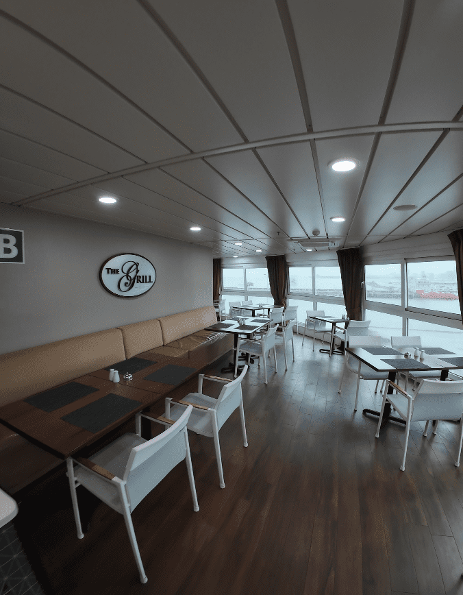 Stepping aboard, the experience feels personal from the very first moment. Instead of being funneled into a long, snaking line, you are greeted at a small reception area that feels more like a boutique hotel than a cruise terminal. A friendly agent at the reception desk welcomes you with a warm smile and genuine hospitality, the kind of greeting that immediately lowers your shoulders and lets you know you are in good hands.
