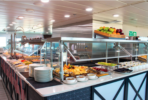 This is where you might linger over a cappuccino as the ship eases toward the next port, or build the perfect plate for lunch with the lake stretching out on every side. The atmosphere reminded me of what my river and wine cruise clients love most—unrushed meals, quality food, and ever‑changing scenery—only here, the experience is right in North America, close to home for so many Chicago area locals and alumni.