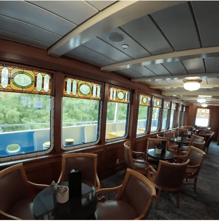 This is the kind of dining room where you linger over conversation, savor a glass of wine, and recap the day’s adventures with friends who have known you for decades. If you can picture yourself toasting the day in a setting like this—sharing stories from long‑ago homerooms or reunions while the lake glimmers outside—this is where those moments will unfold on your Victory Cruise.