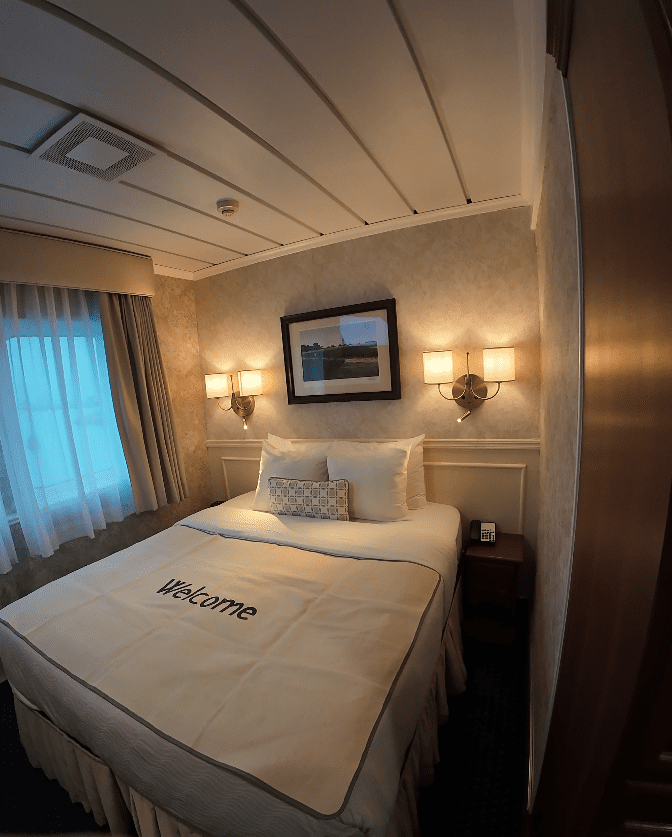 As I moved into the Club‑Level Deluxe Outside Staterooms, the vibe shifted into something that felt refined but very relaxed. These cabins offer crisp linens, warm touches, and that “Welcome” feeling as soon as you open the door. The verandas add fresh air and views, turning your stateroom into a little semi-private lookout over the Great Lakes.